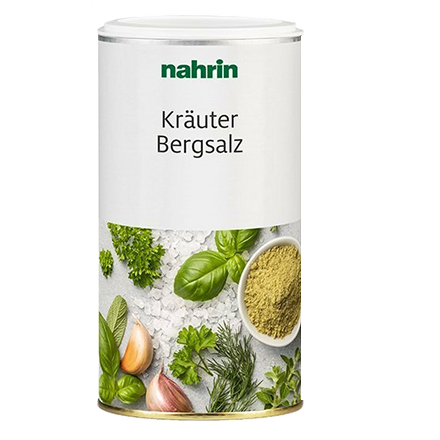 Základem této jemné kořenicí směsi je sůl pocházející z jedné z nejstarších švýcarských lokalit pro těžbu soli. Toto koření Nahrin tedy odkazuje na důraz, jaký výrobce klade na používání lokálních surovin ve svých výrobcích. Dále koření obsahuje vyváženou směs devíti bylinek a jemnou chuť dotváří obsažená cibule, česnek a olivový olej.